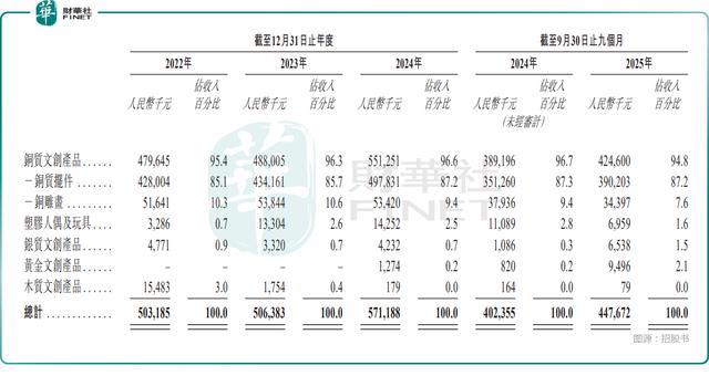 盈利提升的核心驱动力来自核心业务的强势表现。铜质文创产品是绝对支柱,且收入录得持续增长,其中于2024年贡献收入5.51亿元,占总营收的96.6%,其中铜质摆件收入4.98亿元,占比达87.2%,对这部分业务依赖性较高。与此同时,公司通过生产效率优化、产品组合升级,推动整体毛利率从2022年的32.2%提升至2024年的35.4%,盈利能力持续改善。