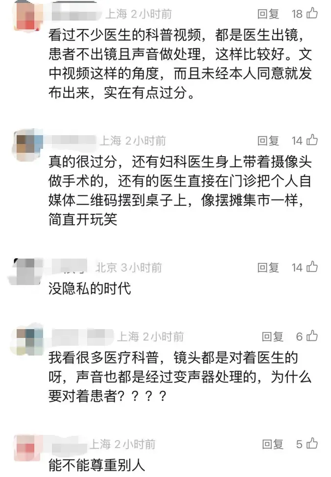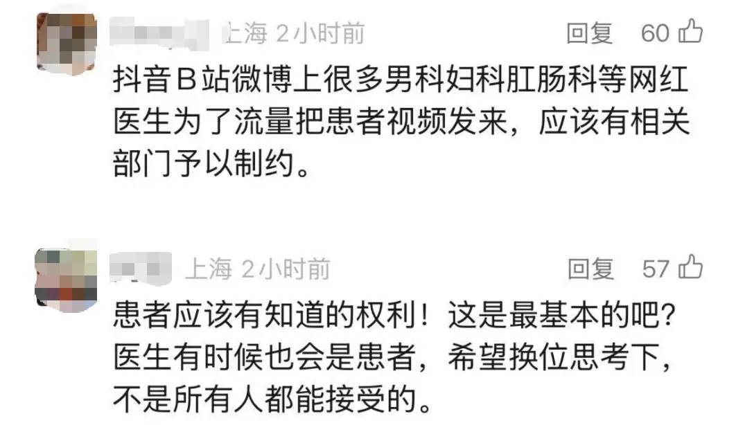 社交平台上,为数不少的网友留言反映相同遭遇,作为公开发布视频里的主要人物,患者知情同意权没有被充分尊重: