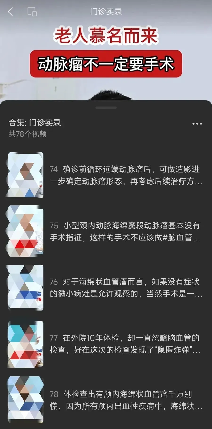 ▲ 该医生视频账号的“门诊实录”合集,发布了78个患者看诊案例